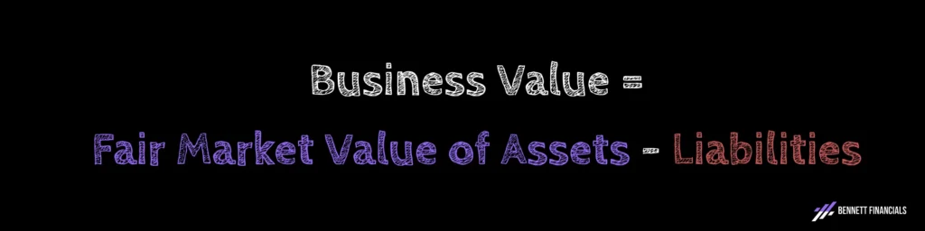 Formula: Business Value = Fair Market Value of Assets – Liabilities