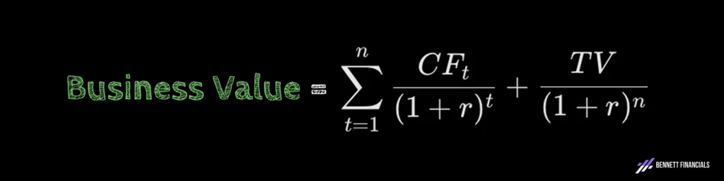 This method projects your business’s expected cash flow over a period (usually 3–5 years) and discounts it back to present value using a discount rate that reflects risk.